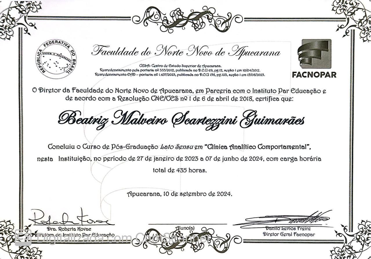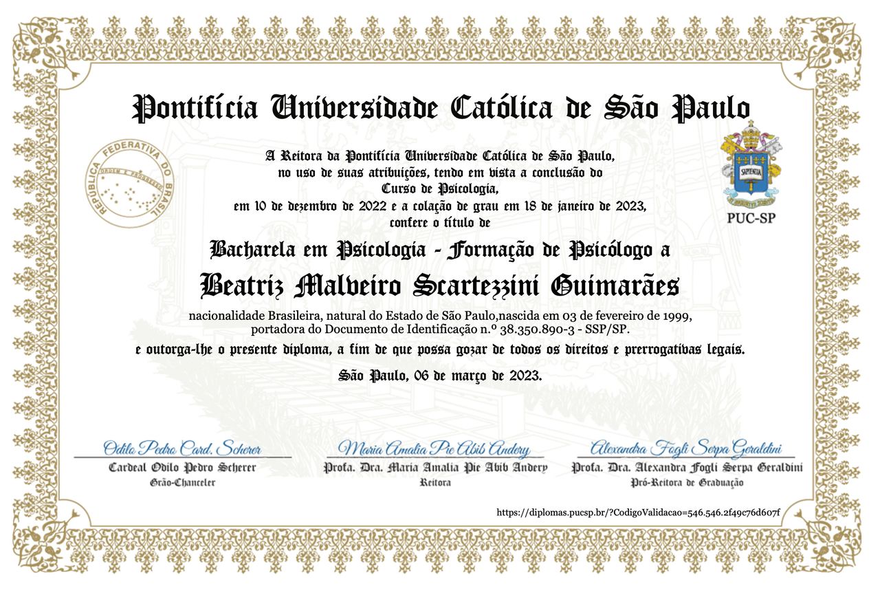 Sou a Beatriz Scartezzini, psicóloga formada pela Pontifícia Universidade Católica de São Paulo (PUC-SP), com especialização em Psicologia Clínica Analítico-Comportamental. Atendo adolescentes e adultos, com experiência no acompanhamento de casos relacionados a transtornos de ansiedade, depressão, TDAH e transtorno bipolar.
